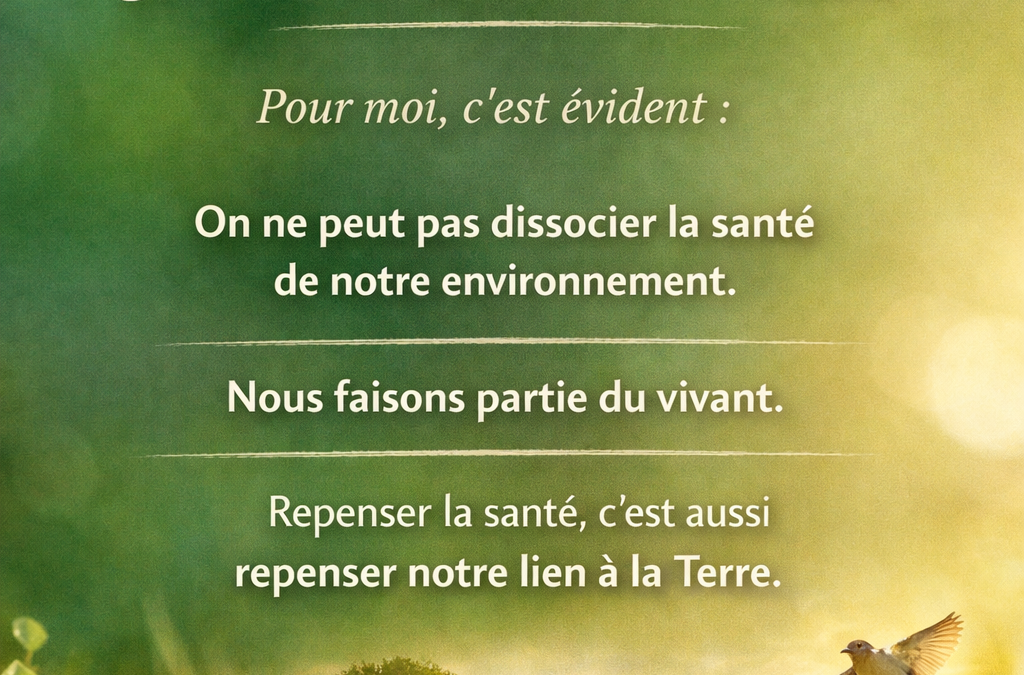 Une approche réellement holistique ne peut plus se limiter aux seuls symptômes ou aux seuls outils thérapeutiques. Elle doit aussi considérer les conditions de vie, les expositions, les déséquilibres écologiques et notre propre lien à la Terre.